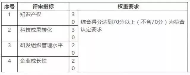 最后,明確了知識產權有多個權屬人時,僅限一個權屬人使用,解決了以往認定中關聯企業共有知識產權的問題。以往實際認定中,如有兩個權屬人,認定時則只按1/2個知識產權認定,以此類推。 科技成果轉化能力 依照《促進科技成果轉化法》,科技成果是指通過科學研究與技術開發所產生的具有實用價值的成果(專利、版權、集成電路布圖設計等)。科技成果轉化是指為提高生產力水平而對科技成果進行的后續試驗、開發、應用、推廣直至形成新產品、新工藝、新材料,發展新產業等活動。 科技成果轉化形式包括:自行投資實施轉化;向他人轉讓該技術成果;許可他人使用該科技成果;以該科技成果作為合作條件,與他人共同實施轉化;以該科技成果作價投資、折算股份或者出資比例;以及其他協商確定的方式。 由技術專家根據企業科技成果轉化總體情況和近3年內科技成果轉化的年平均數進行綜合評價。同一科技成果分別在國內外轉化的,或轉化為多個產品、服務、工藝、樣品、樣機等的,只計為一項。 A、化能力強,≥5項(25-30分) B、轉化能力較強,≥4項(19-24分) C、轉化能力一般,≥3項(13-18分) D、轉化能力較弱,≥2項 (7-12分) E、轉化能力弱,≥1項(1-6分) F、轉化能力無,0項(0分) 研究開發組織管理水平(≤20分) 由技術專家根據企業研究開發與技術創新組織管理的總體情況,結合以下幾項評價,進行綜合打分。 (1)制定了企業研究開發的組織管理制度,建立了研發投入核算體系,編制了研發費用輔助賬;(≤6分) (2)設立了內部科學技術研究開發機構并具備相應的科研條件,與國內外研究開發機構開展多種形式產學研合作;(≤6分) (3)建立了科技成果轉化的組織實施與激勵獎勵制度,建立開放式的創新創業平臺;(≤4分) (4)建立了科技人員的培養進修、職工技能培訓、優秀人才引進,以及人才績效評價獎勵制度。(≤4分) 企業成長性(≤20分) 由財務專家選取企業凈資產增長率、銷售收入增長率等指標對企業成長性進行評價。企業實際經營期不滿三年的按實際經營時間計算。計算方法如下: (1)凈資產增長率 凈資產增長率=1/2(第二年末凈資產÷第一年末凈資產+第三年末凈資產÷第二年末凈資產)-1 凈資產 = 資產總額 - 負債總額 資產總額、負債總額應以具有資質的中介機構鑒證的企業會計報表期末數為準。 (2)銷售收入增長率 銷售收入增長率=1/2(第二年銷售收入÷第一年銷售收入+第三年銷售收入÷第二年銷售收入)-1 企業凈資產增長率或銷售收入增長率為負的,按0分計算。第一年末凈資產或銷售收入為0的,按后兩年計算;第二年末凈資產或銷售收入為0的,按0分計算。 以上兩個指標分別對照下表評價檔次(ABCDEF)得出分值,兩項得分相加計算出企業成長性指標綜合得分。 |